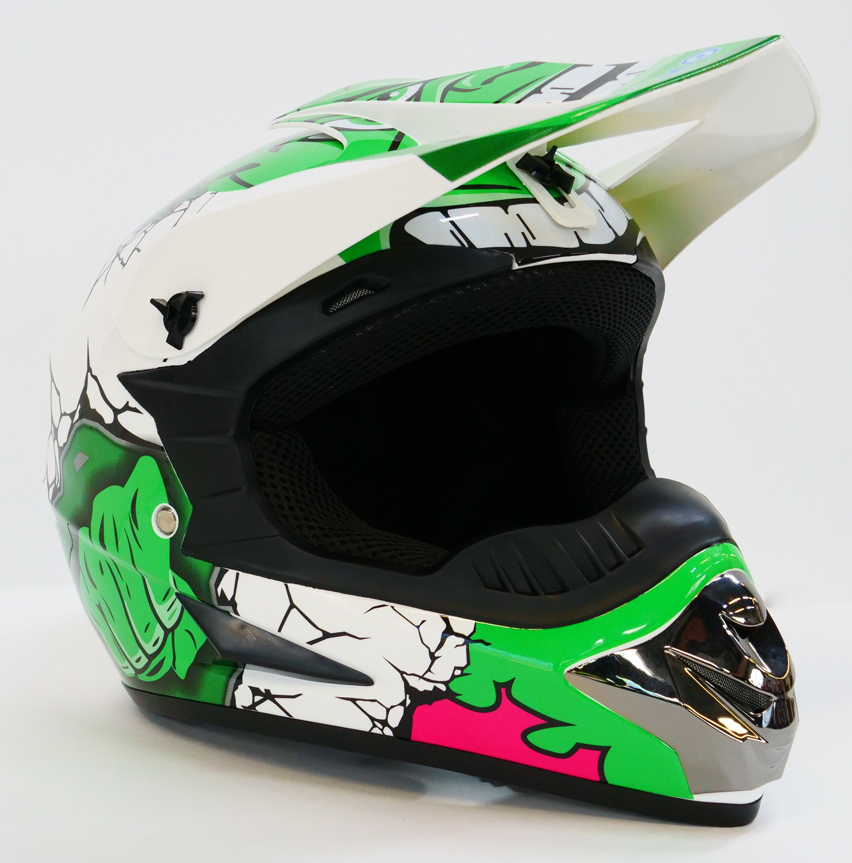 Шлем кроссовый MOTAX глянцево-белый-зеленый в Барнауле