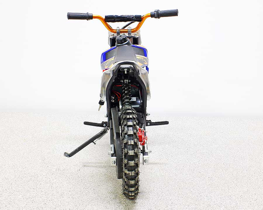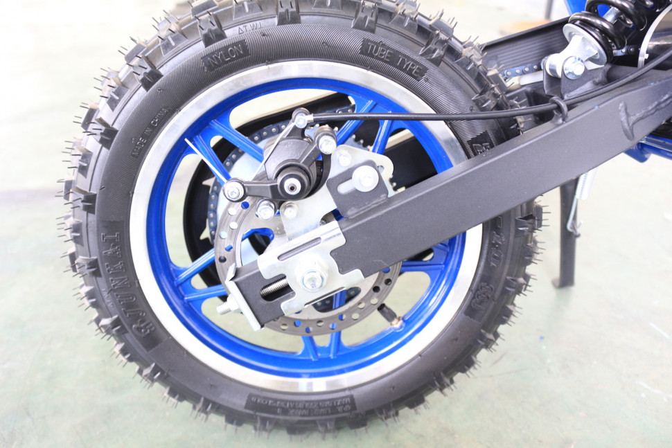 Питбайк DB301-LA оснащен цепной передачей, что обеспечивает эффективную передачу мощности на колеса и высокую скорость разгона. Дисковые тормоза как спереди, так и сзади гарантируют отличное торможение, обеспечивая безопасность при движении. Колесная база в 905 мм и размеры шин 16*2.50-10 делают его устойчивым и маневренным на различных типах местности.