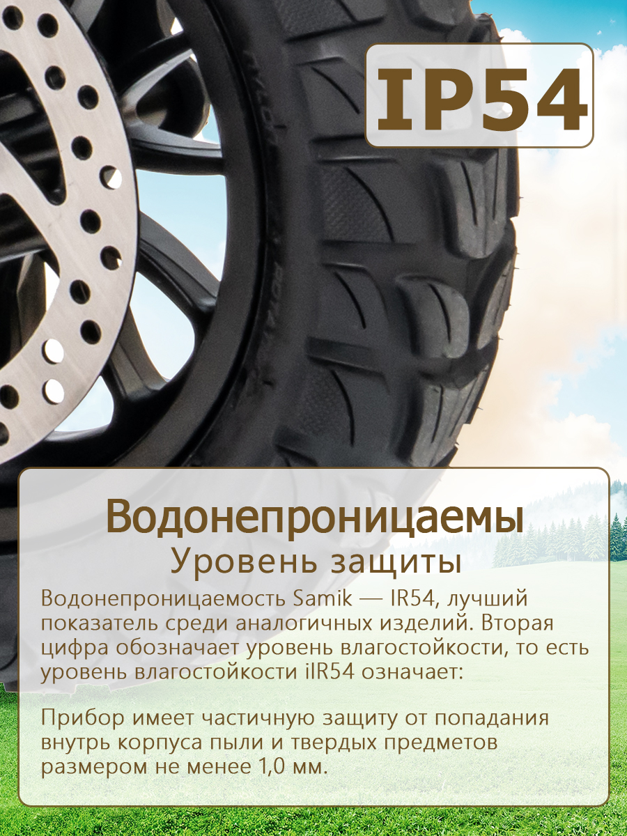 Вес самоката составляет 24 кг, что обеспечивает устойчивость на высоких скоростях и приемлемую массу для переноски в сложенном состоянии. Максимальная нагрузка достигает 120 кг, позволяя использовать самокат большинству взрослых пользователей. Степень защиты IP54 гарантирует надежную работу электроники при попадании пыли и брызг воды.