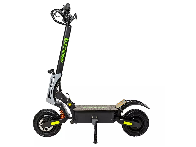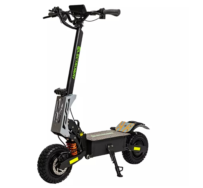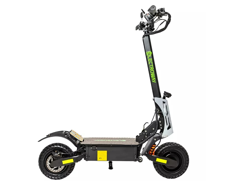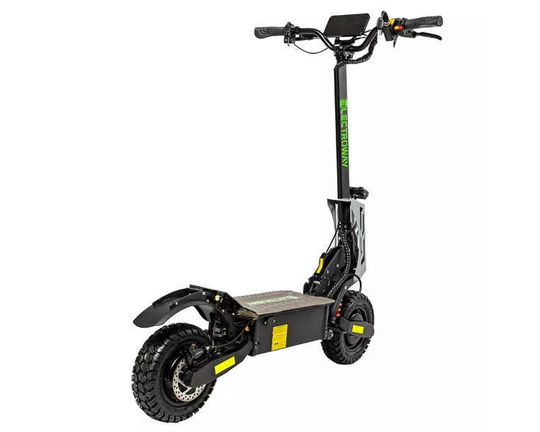 Electroway F5 оснащен двумя мощными электродвигателями по 2800 Вт каждый, что обеспечивает отличную динамику разгона и высокую проходимость на различных типах дорог. Полный привод позволяет уверенно передвигаться по сложным маршрутам, включая неровные и труднопроходимые участки. С диаметром колес в 11 дюймов и внедорожными покрышками, этот самокат легко справляется с бордюрами, лежачими полицейскими и другими препятствиями.Комфорт и удобство