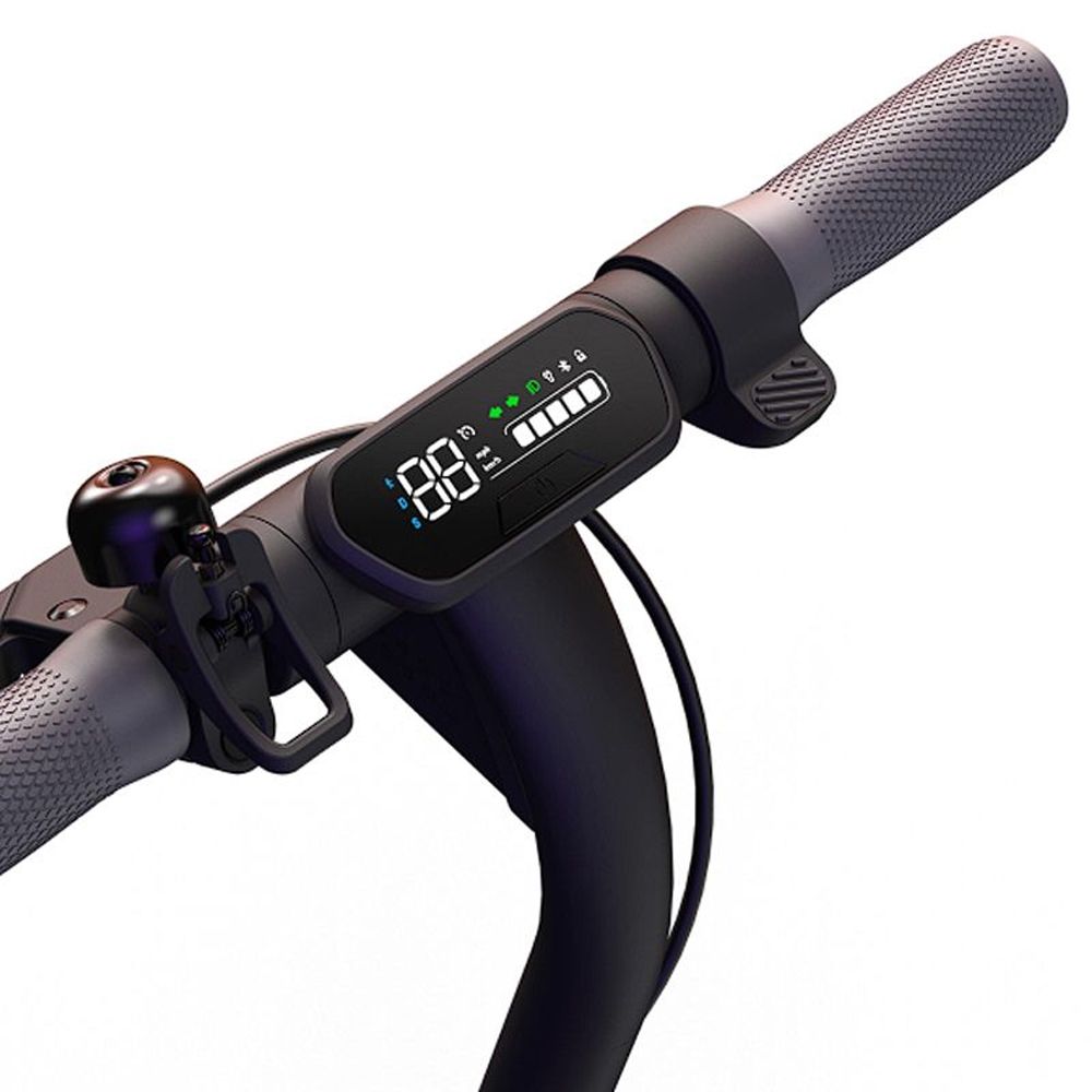 Электросамокат оснащен современным светодиодным дисплеем с высоким разрешением, который отображает все необходимые параметры, такие как скорость и уровень заряда батареи. Угол наклона дисплея регулируется до 25°, что позволяет удобно читать информацию, не отвлекаясь от дороги. Эта функция улучшает эргономику и делает управление самокатом более комфортным.