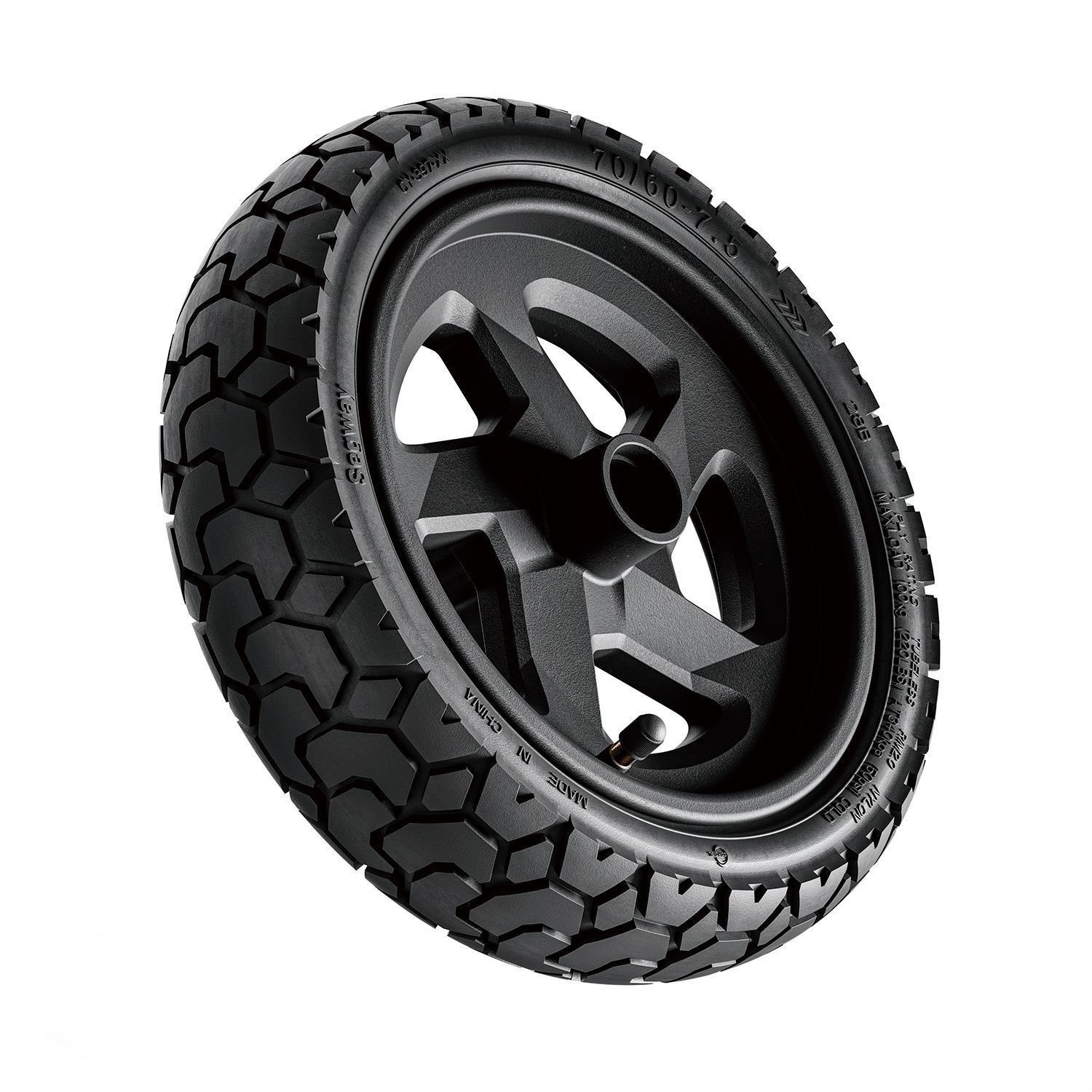 Да, самокат для этого и сделан. Клиренс 152 мм, 11-дюймовые бескамерные покрышки с внедорожным протектором и двойная подвеска уверенно справляются с грунтом, гравием и брусчаткой.
