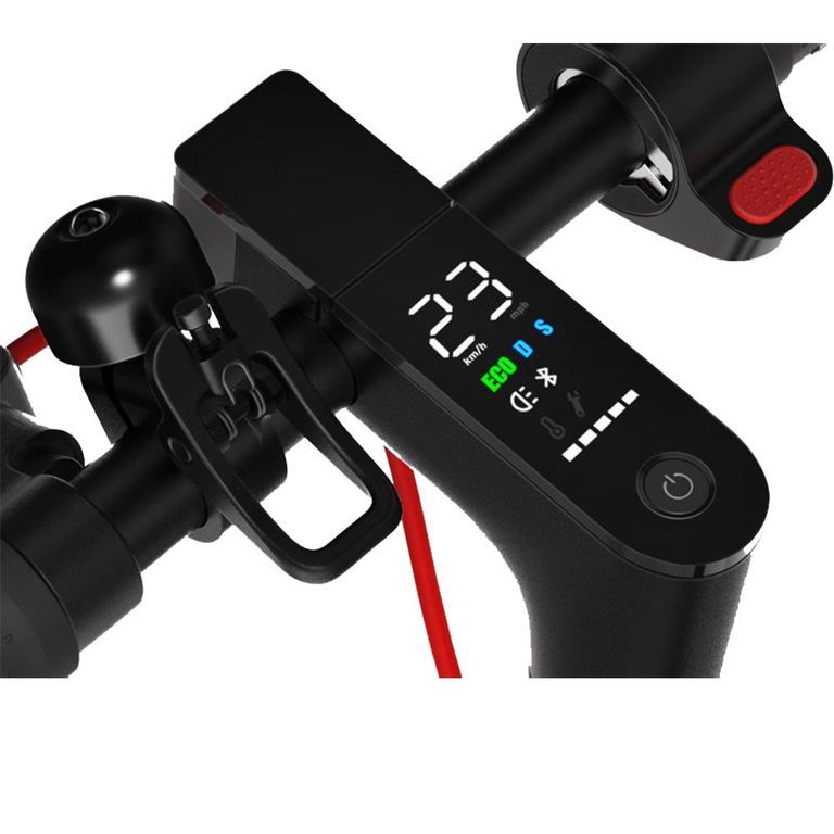 Классический черный цвет с красными вставками. Лаконичный дизайн делает электросамокат еще более стильным. Будь то в потоке или на стоянке возле офиса — он выглядит просто великолепно.
