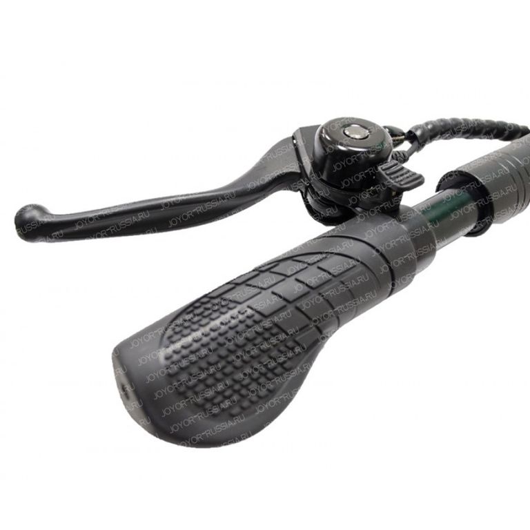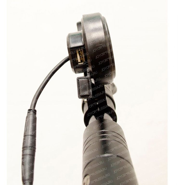 - Электрический складной самокат Joyor F5 имеет переднюю подвеску с амортизатором, а так же передние и задние фонари, управляемые при помощи ЖК-дисплея.