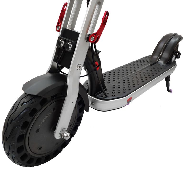 За комфортную езду по неровным дорогам отвечают 10-дюймовые перфорированные колеса. Брусчатка, ямы, кочки или щебень не помешают мягко и плавно передвигаться по улицам.