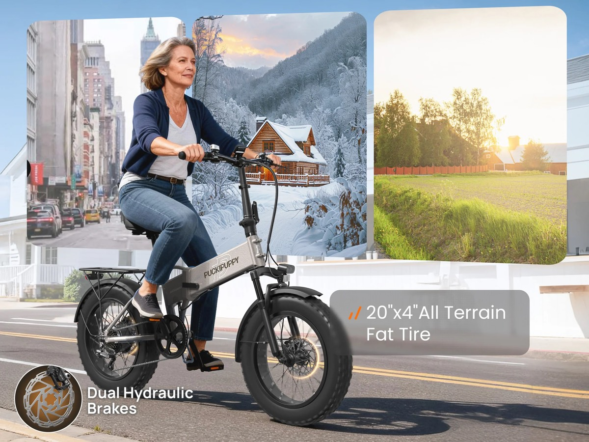 20-дюймовые колёса с широкими покрышками толщиной 4 дюйма созданы для езды по самым разным поверхностям. Они уверенно идут по песку, снегу, грязи и гравию, не проваливаясь и не теряя сцепления. Агрессивный протектор обеспечивает надёжное сцепление с любыми поверхностями — от мокрого асфальта до рыхлого грунта. Небольшой диаметр колёс добавляет манёвренности, позволяя легко разворачиваться в узких местах, парковаться в ограниченном пространстве и объезжать препятствия.