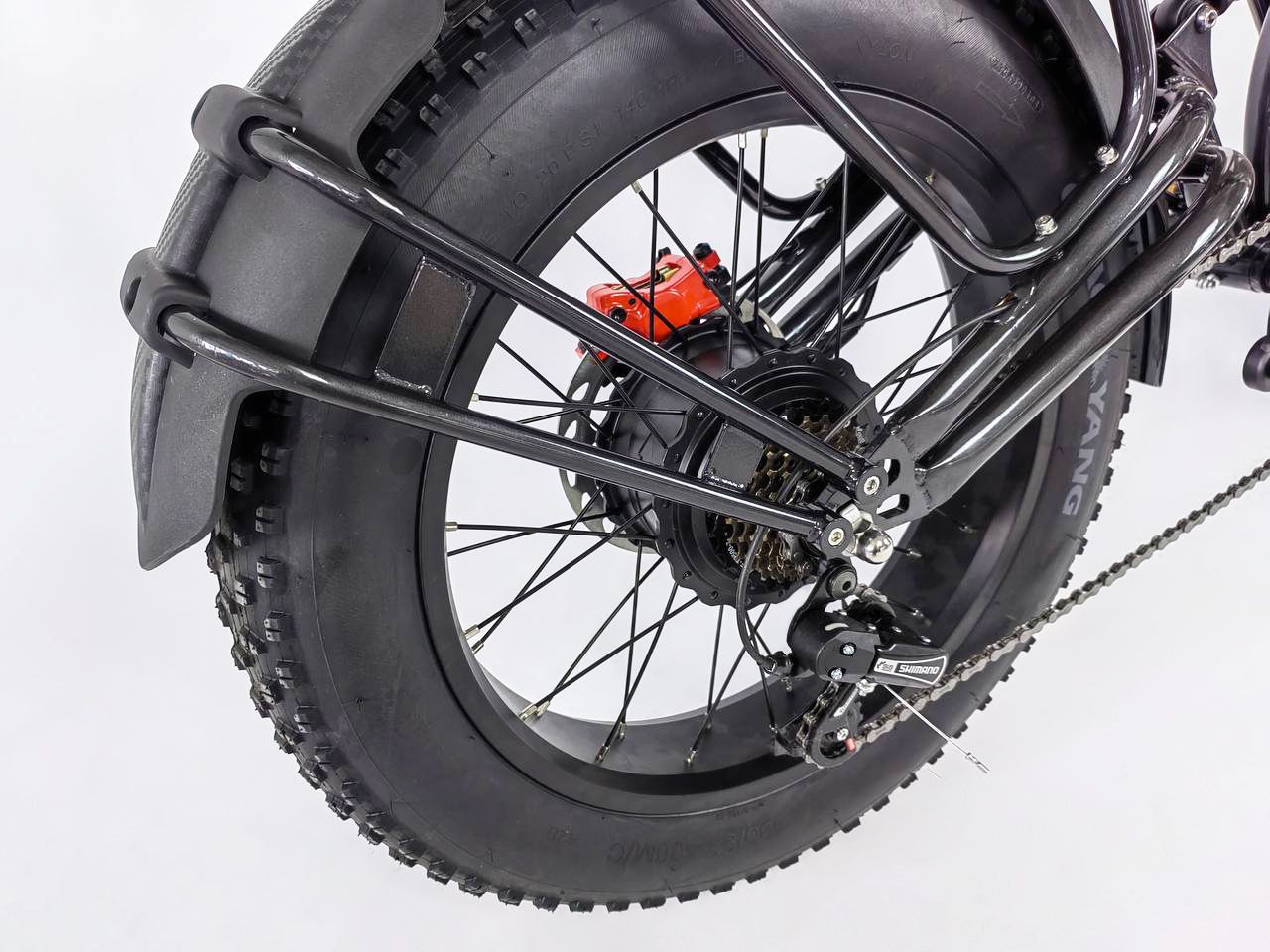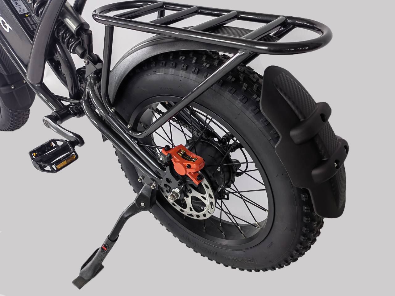 Минако ФОКС оборудован мощным мотором на 100 ватт, с ним вы сможете взбираться на самые крутые подъёмы и разгоняться до 55 км/ч. Вы сможете кататься на электрофэтбайке продолжительное время без усталости за счёт удобного сиденья. В задней части электровектровелосипеда есть вместительный багажник для перевоза пассажиров или вещей.